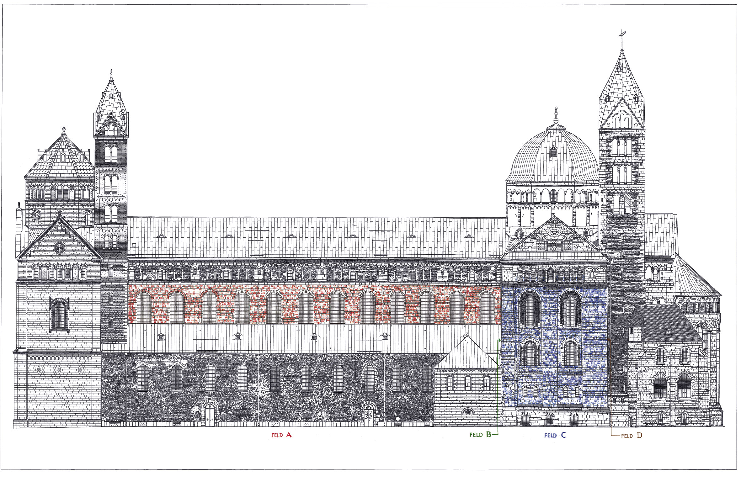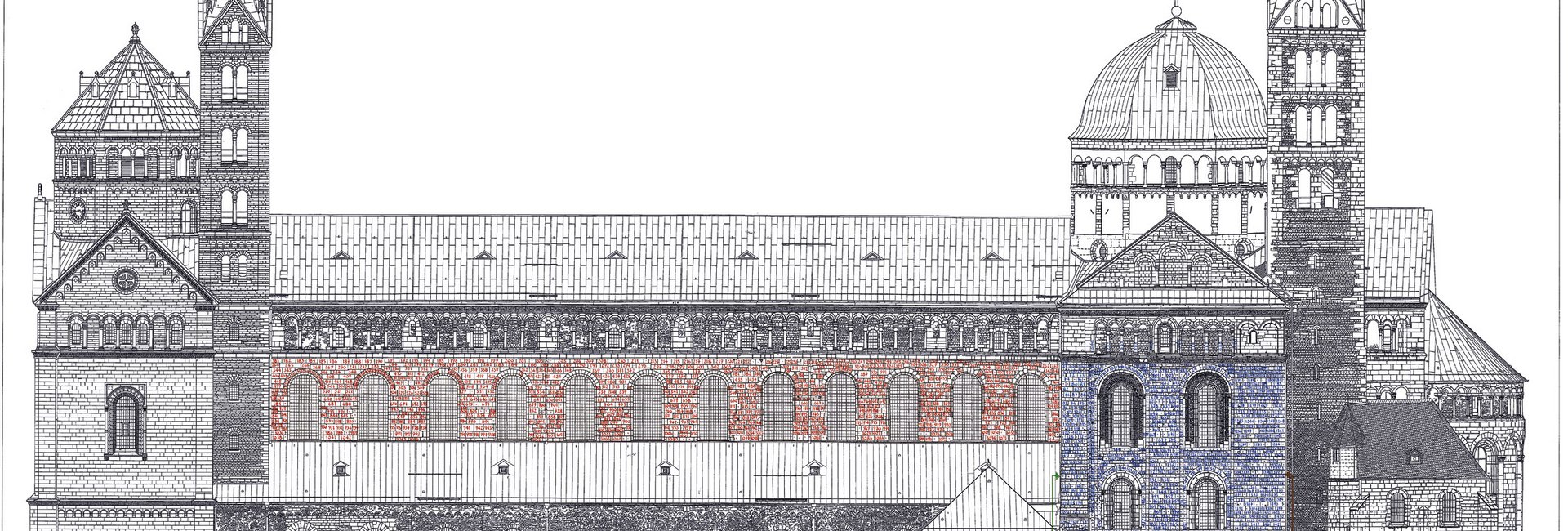 Im Rahmen der jüngsten Dom-Restaurierung wurde der Dom steingenau vermessen. Mit modernster digitaler Technik ist es nun möglich, jeden einzelnen Stein des Salierdomes in einer millimetergenauen Zeichnung darzustellen.